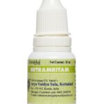 Netramritam is an Ayurvedic eye drops used for the treatment of seasonla conjunctivitis, iritis etc. It is manufactured by Arya Vaidya Sala, Kottakkal.