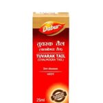 Dabur Tuvarak (Chalmogra) Tail is an ayurvedic oil that is primarily used for the treatment of various skin ailments. It is formulated with Chalmogra oil, which is derived from the seeds of the Chalmogra tree. Dabur Tuvarak (Chalmogra) Tail is known for its usefulness in the treatment of skin ailments such as itching and mild dermatitis.